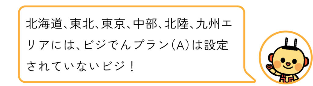 ビジでんプランはA・B・Cの3種類に分けられますが、ご契約住所のエリアによって異なる場合があります。例えば関西、中国、四国エリアには、Cプランは設定されておらず、他エリアで言うCプランはBプランという名称で提供されています。地域によって違いがある理由は、地域の旧一般電気事業者毎に独自の料金体系をもっていることが挙げられます。