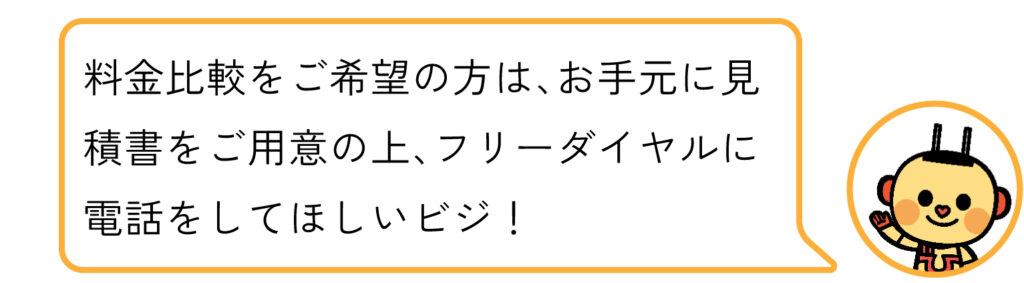 - 料金比較をご希望の場合、お手元に見積書をご用意の上ビジでんに電話する
