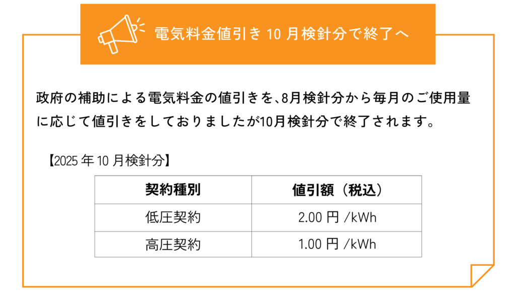 - 電気料金値引き10月検針分で終了